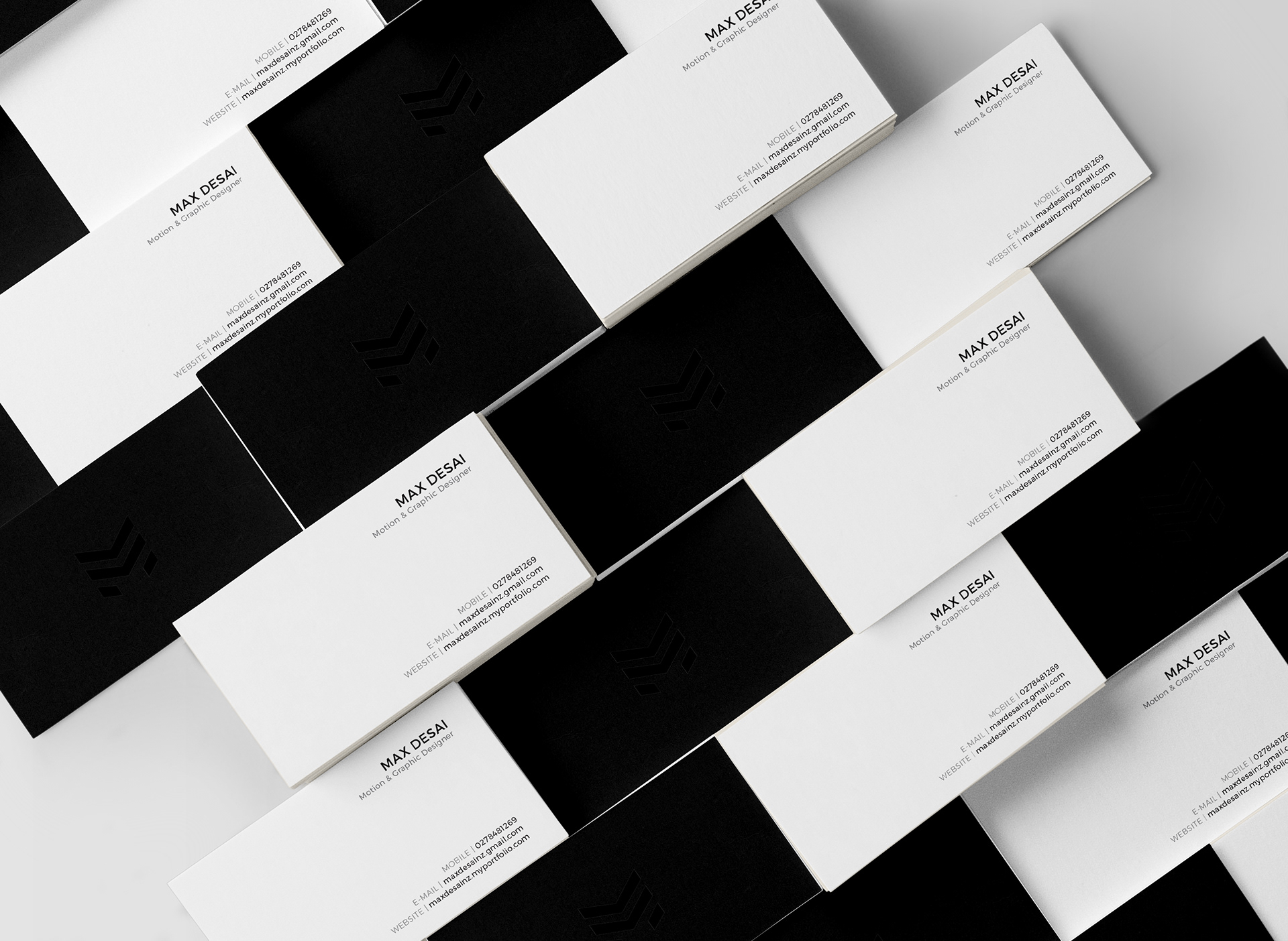 Personal print identity. I wanted the cards to deliver the essence of motion. As you turn the card in the light, the logo is revealed.